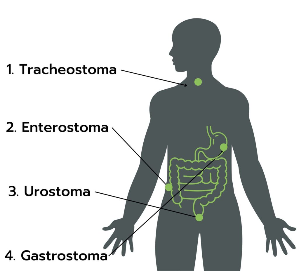 Je nachdem, welche lebenswichtige Körperfunktion ausfällt, wird zwischen 4 Stoma-Arten unterschieden: